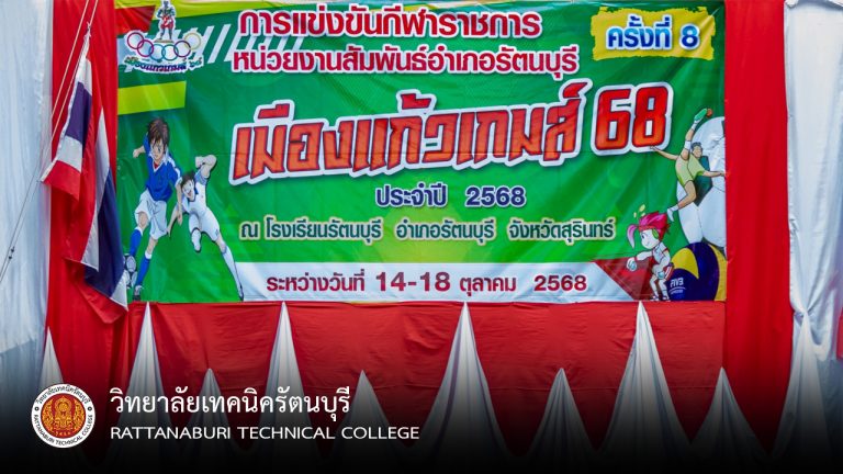 วิทยาลัยเทคนิครัตนบุรี เข้าร่วมการแข่งขันกีฬาราชการ หน่วยงานสัมพันธ์ อำเภอรัตนบุรี ครั้งที่ 8 เมืองแก้วเกมส์ 68 ประจำปี 2568 วันที่ 14 – 18 ตุลาคม 2568 ณ โรงเรียนรัตนบุรี อำเภอรัตนบุรี จังหวัดสุรินทร์