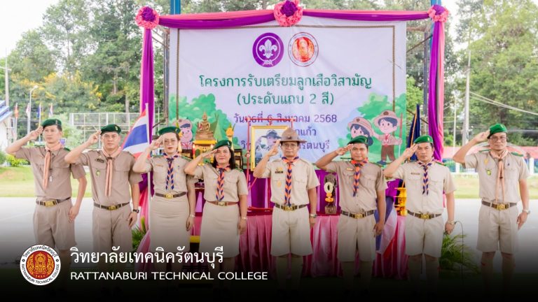 ดูเพิ่มเติมโครงการรับเตรียมลูกเสือวิสามัญ (ประดับแถบ 2 สี) วันที่ 6 สิงหาคม 2568 ณ โดมดอกแก้ว วิทยาลัยเทคนิครัตนบุรี